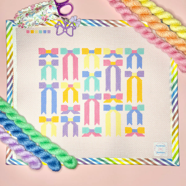 I began needlepointing in 2020 when I was searching for something to calm my mind. Like so many others, I couldn't put it down once I began! And, true to my upbringing, the urge to design my own "from scratch" gnawed at me until I gave in. And so, The Stitched Bowtique was born.