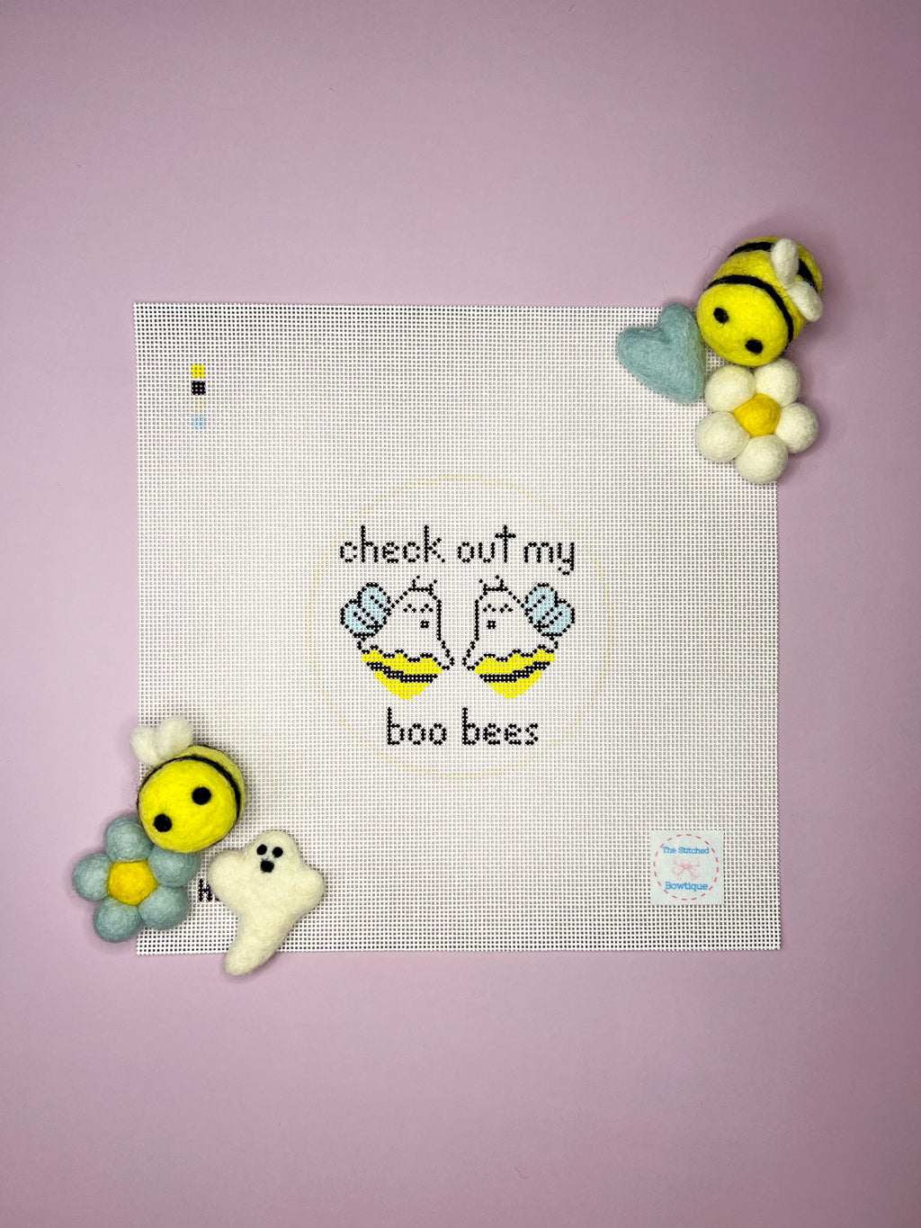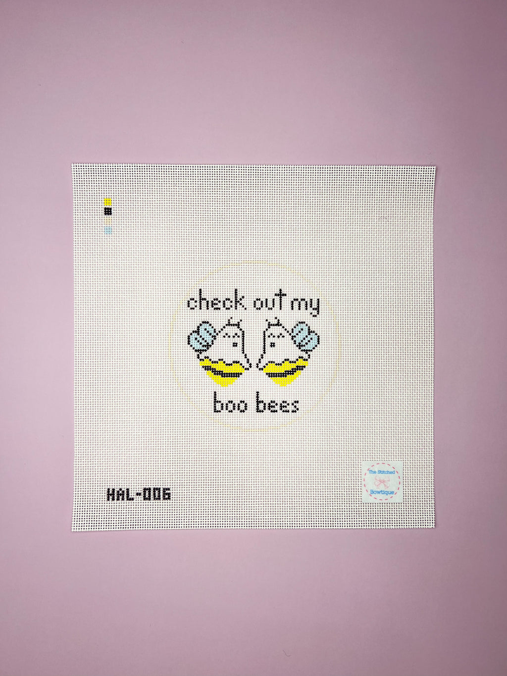 Who doesn’t love a good pun?! Stitch painted on 18 mesh. The black outline is a 4” round.