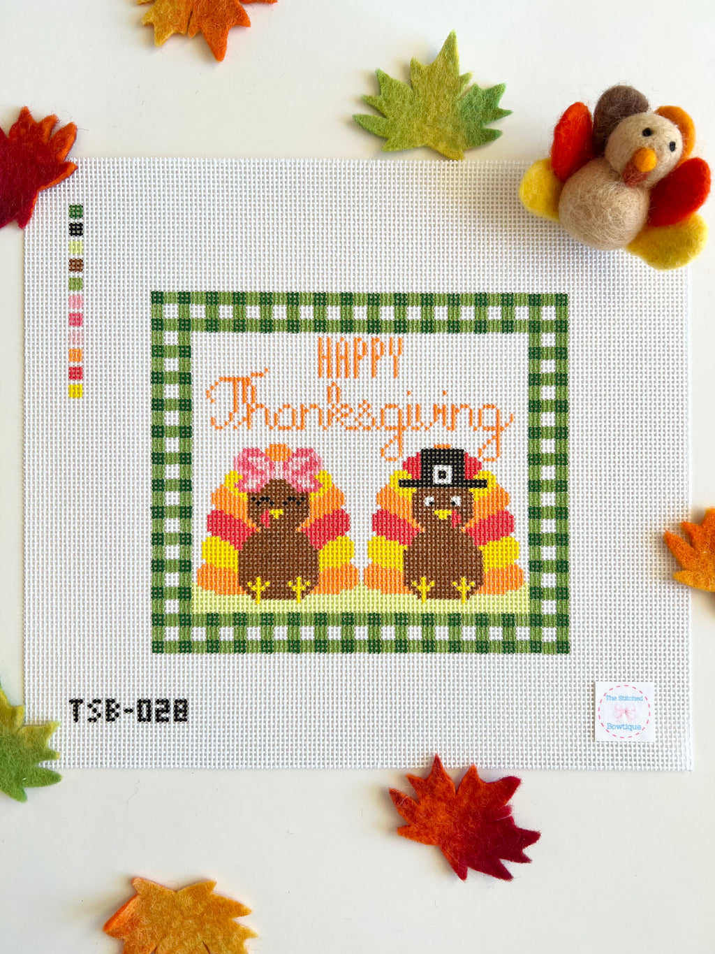 Stitch painted on 13 mesh, this canvas measures about 7” x 6”.